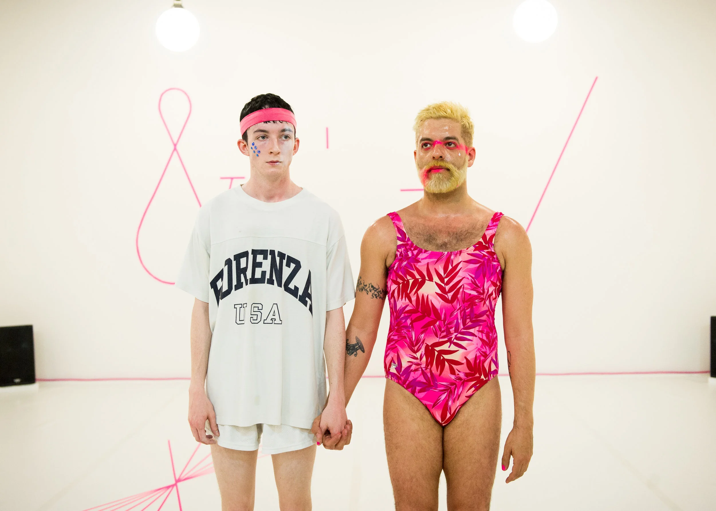 Age & Beauty Part 1: Mid-Career Artist/Suicide Note or &:-/ is the first of a suite of queer pieces that addresses queer time, futurity, and mid-life anxieties about relevance, sustainability and artistic burnout. Part 1 is a duet for 43 year old Gutierrez and 24 year old performer/dancer Mickey Mahar and follows from a set of precise unison dances to an irreverent and celebratory corruption of orderliness. This performance suggests modes of communication and relations where hyper-emotional affect is not only the conceptual and choreographic core of the performance, but also the only hope for continuing in this fucked up world.